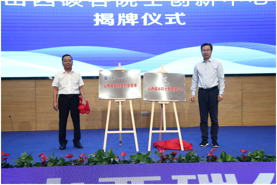 ▲金智新、丁紀(jì)崗共同為山西碳谷科技創(chuàng)新智庫(kù)、山西碳谷院士創(chuàng)新中心揭牌