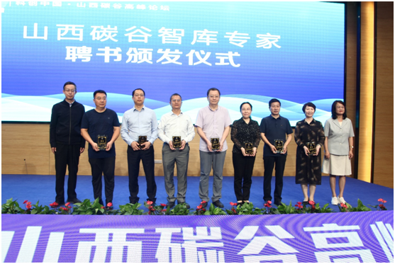 ▲貢琦、劉曉哲、張學(xué)東共同為11位山西碳谷科技創(chuàng)新智庫(kù)首批專家頒發(fā)聘書(shū)
