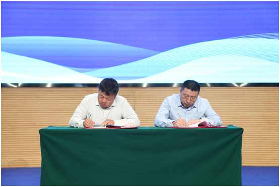 ▲山西省創(chuàng)新科技發(fā)展基金會(huì)秘書(shū)長(zhǎng)栗爭(zhēng)榮與并州建設(shè)公司董事長(zhǎng)張建國(guó)進(jìn)行“科創(chuàng)中國(guó)?山西碳谷”科技發(fā)展基金簽約