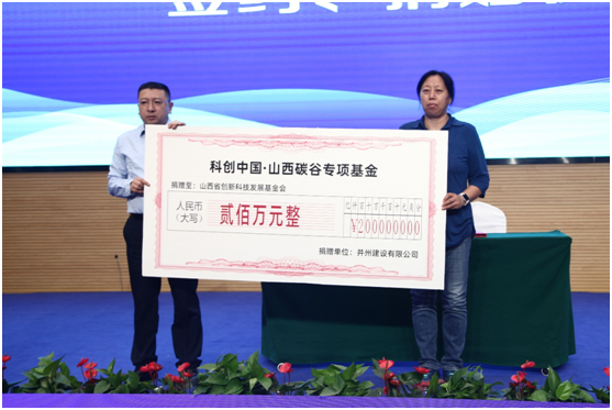 為打造山西碳谷,山西省創(chuàng)新科技發(fā)展基金會(huì)設(shè)立山西碳谷專項(xiàng)基金,專門(mén)資助建設(shè)零碳科普體驗(yàn)館,促進(jìn)“雙碳”技術(shù)成果轉(zhuǎn)化,開(kāi)展“雙碳”科技智庫(kù)課題研究。開(kāi)幕式上,山西省創(chuàng)新科技發(fā)展基金會(huì)秘書(shū)長(zhǎng)栗爭(zhēng)榮與并州建設(shè)公司董事長(zhǎng)張建國(guó)進(jìn)行“科創(chuàng)中國(guó)?山西碳谷”科技發(fā)展基金簽約,山西省創(chuàng)新科技發(fā)展基金會(huì)理事長(zhǎng)溫輝芹接受捐贈(zèng)。