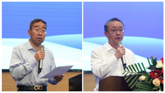 ▲山西綜改示范區(qū)晉中開(kāi)發(fā)區(qū)副主任王高峰(左)、浦發(fā)銀行太原分行行長(zhǎng)白海忠(右)在論壇發(fā)布議程分別致辭