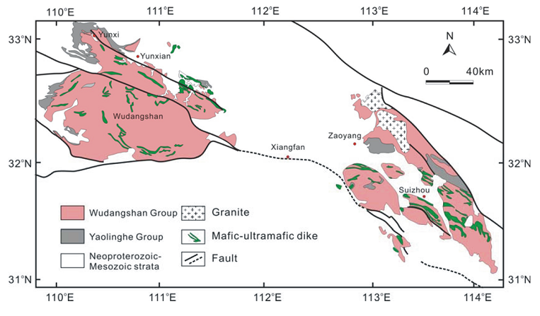 隨棗地塊地處我國腹地,位于揚子版塊北緣和著名的揚子版塊與華北板塊之間的縫合帶—秦嶺大別俯沖碰撞造山帶的南緣,西隔南襄翁地與武當(dāng)?shù)貕K相望,東延部分為大別山南麓,因此該地塊在我國中部大地構(gòu)造劃分中起著連接南北,承接?xùn)|西的微妙作用。該地塊東北方向以新城—黃陂斷裂與桐柏地塊相隔,西南以襄樊—廣濟斷裂與穩(wěn)定的揚子地塊相接。該區(qū)域主要發(fā)育大狼山群及古生界地層。在隨棗地區(qū),自中新元古代開始一直伴隨著時強時弱的巖漿—活動。從新元古代帶志留紀(jì)持續(xù)有基性巖形成。其中的主要巖體有府君山、獨崇山、長嶺、壽山等,遍布于安陸、應(yīng)山、隨州、棗陽等縣(市)境內(nèi),巖性較單一,巖體多順層產(chǎn)出,并常與變質(zhì)基性火山巖共生。整個區(qū)域變質(zhì)較淺,受造山帶的影響很弱。