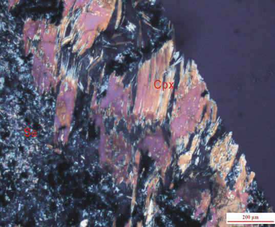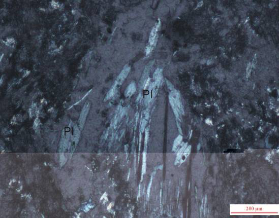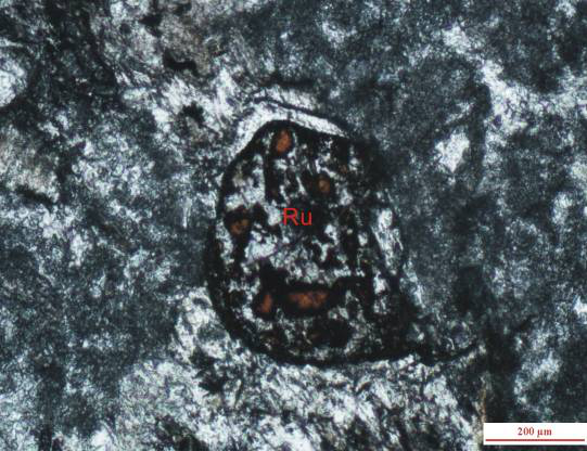 二是室內(nèi)顯微鏡下觀察礦物的特征,對其中所含礦物種類,礦物形態(tài),礦物結(jié)構(gòu)構(gòu)造,礦物之間的形態(tài)關(guān)系等進行了分析,得出了一些具體結(jié)論。