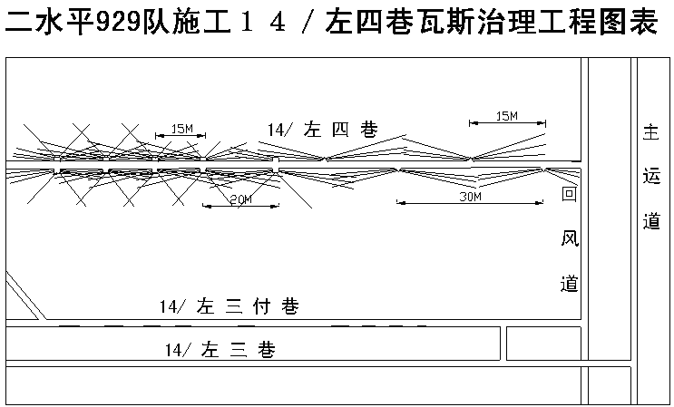 圖1 14號(hào)煤層巷道瓦斯抽放鉆孔布置示意圖