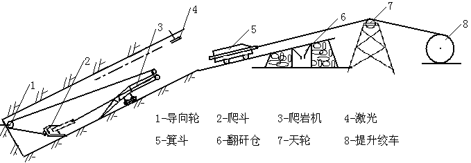 根據(jù)斜井?dāng)嗝娲?、井筒較長(zhǎng)、傾角大等特點(diǎn),選擇施工設(shè)備。