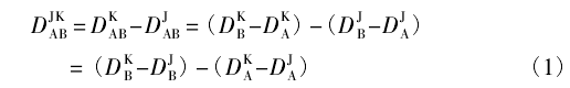 假定有兩個站點A、B和兩個歷元J與K,先進行站點間差分,然后在進行時域間差分: