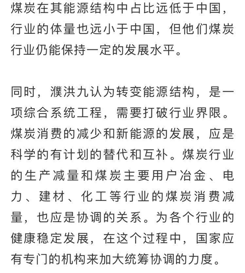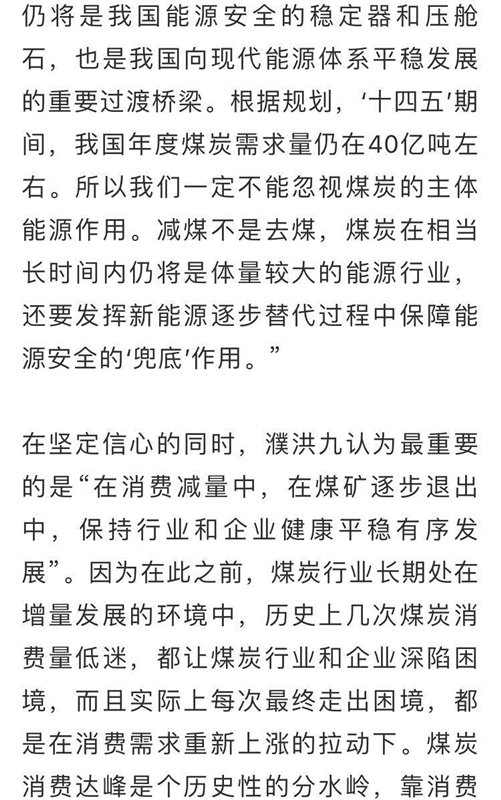 他認(rèn)為,煤炭行業(yè)發(fā)展到如今的體量,是為保障國家能源安全;在新的歷史時(shí)期,逐步減量發(fā)展,也是國家戰(zhàn)略所需。煤炭行業(yè)和企業(yè)要及早謀劃部分煤礦的退出事宜,這個(gè)過程中產(chǎn)生的很多問題也需要政策協(xié)同解決,需要政府和各界的幫助和支持。
