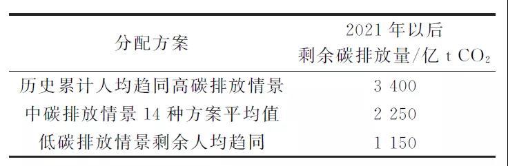 表1我國剩余碳排放空間