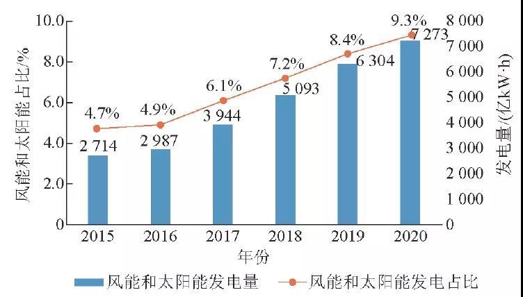 圖5 風(fēng)能和太陽能發(fā)電量情況(2015-2020)