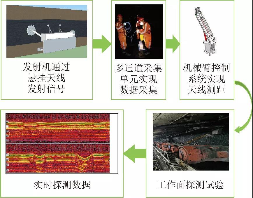 (1)提出了采煤機自主導(dǎo)航截割控制模式,它是采煤機的人工目測截割、機載探測截割、示教記憶截割之后的智能截割模式,為智采工作面的采煤機自動駕駛提供了新技術(shù)。導(dǎo)航截割模式具有導(dǎo)航地圖、位姿感知、路徑規(guī)劃、姿態(tài)控制等4個技術(shù)內(nèi)涵,包括精細(xì)化煤層截割定位地圖、精準(zhǔn)化煤層截割導(dǎo)航地圖、動態(tài)化煤層截割導(dǎo)控地圖、采煤機融合定位方法、定位精度提升、智采機組全位姿參數(shù)矩陣建立、物理-虛擬模型驅(qū)動與交互、無人駕駛防沖撞路徑規(guī)劃、截割作業(yè)智能調(diào)高調(diào)直等9項關(guān)鍵技術(shù)。(2)以地質(zhì)統(tǒng)計學(xué)反演為紐帶所建立煤層截割定位地圖可作為采煤機截割路徑設(shè)計的基本依據(jù),由C-SLAM實時探測得到煤層截割導(dǎo)航地圖可為采煤機3~5刀截割提供導(dǎo)航坐標(biāo),根據(jù)采煤機上的煤巖截割監(jiān)測建立煤層截割導(dǎo)控地圖能夠?qū)崟r反饋調(diào)控截割滾筒姿態(tài),調(diào)控精度可達(dá)20mm,并實時修正和更新采煤機導(dǎo)航截割的路徑坐標(biāo)。(3)通過捷聯(lián)慣性導(dǎo)航定位技術(shù)與其他傳感器對采煤機位置的融合感知,加以動態(tài)零速修正算法修正,可實現(xiàn)對復(fù)雜惡劣環(huán)境中的采煤機位姿進行精確監(jiān)測,定位誤差小于50mm。(4)構(gòu)建了“物理空間感知、數(shù)據(jù)交互與處理、虛擬空間執(zhí)行”三維度的智采機組“三機”全位姿參數(shù)矩陣與數(shù)字孿生系統(tǒng)基本架構(gòu),以智采機組全位姿參數(shù)矩陣為載體,通過內(nèi)部優(yōu)化算法與大數(shù)據(jù)分析,可實現(xiàn)智采機組物理-虛擬模型的實時驅(qū)動與交互。