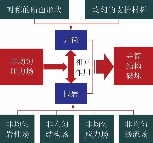 非均勻應(yīng)力場(chǎng)導(dǎo)致井巷支護(hù)結(jié)構(gòu)破壞