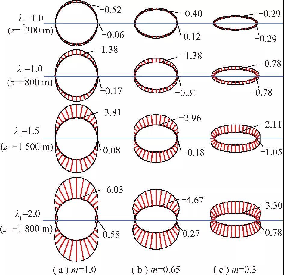 (2)建立了不同巖體結(jié)構(gòu)深井井筒力學(xué)模型分類體系并推導(dǎo)了橢圓形井筒的三維解析解。