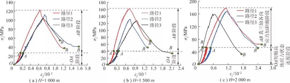 真三軸條件下深部砂巖應(yīng)力-應(yīng)變曲線