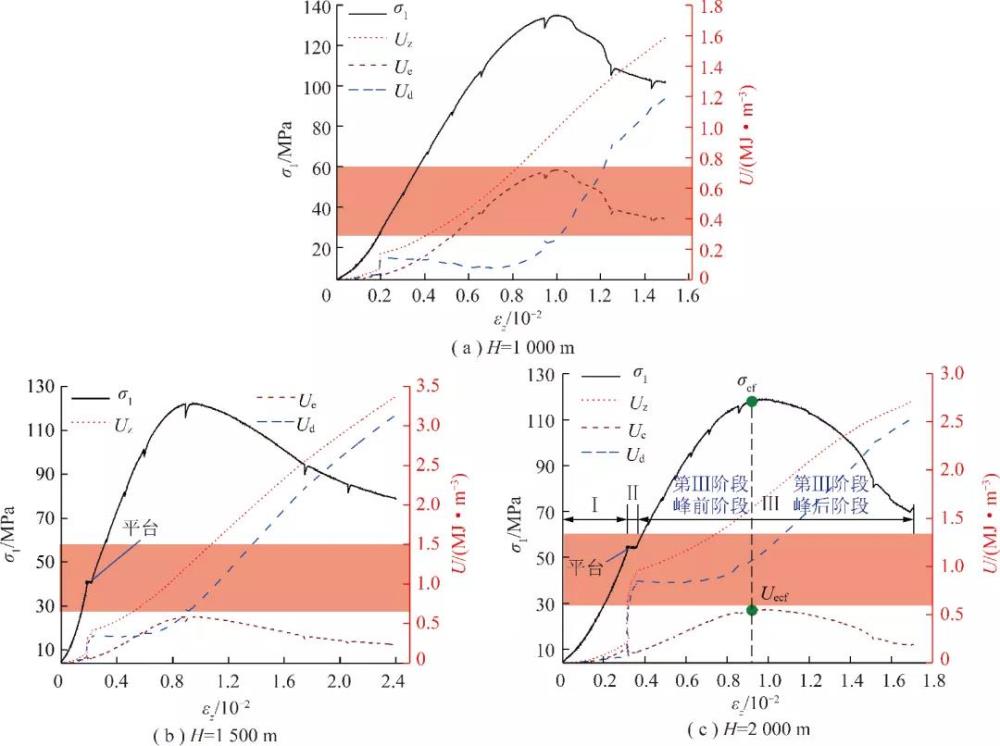 深部砂巖變形全過程能量演化曲線(σ3unload=13MPa)