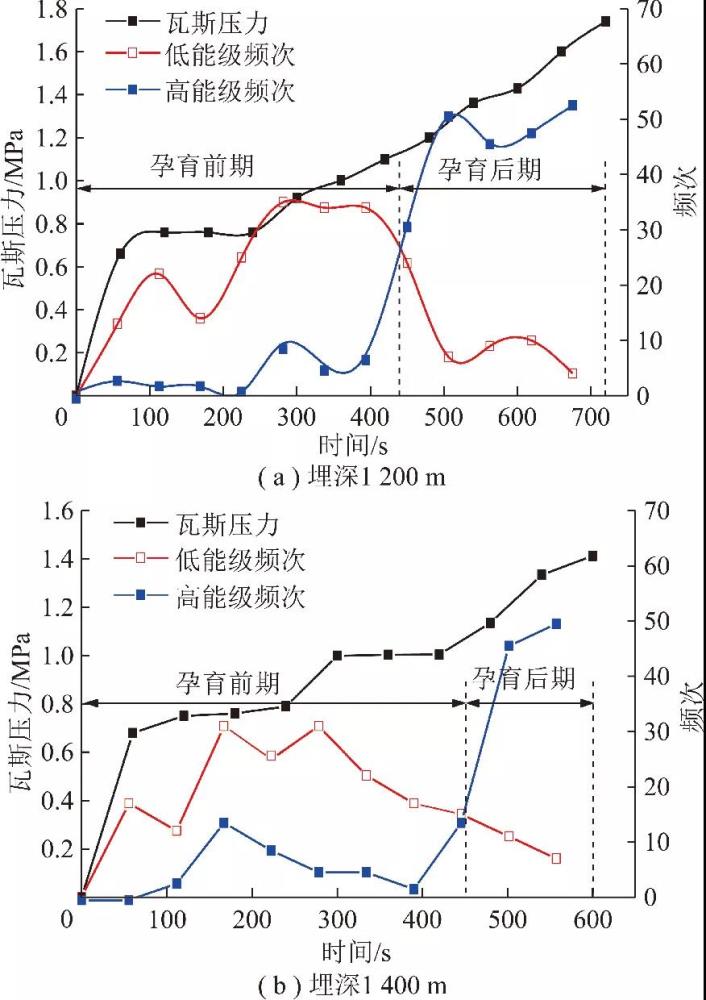 復(fù)合災(zāi)害孕育階段瓦斯壓力與能級(jí)頻次間關(guān)系