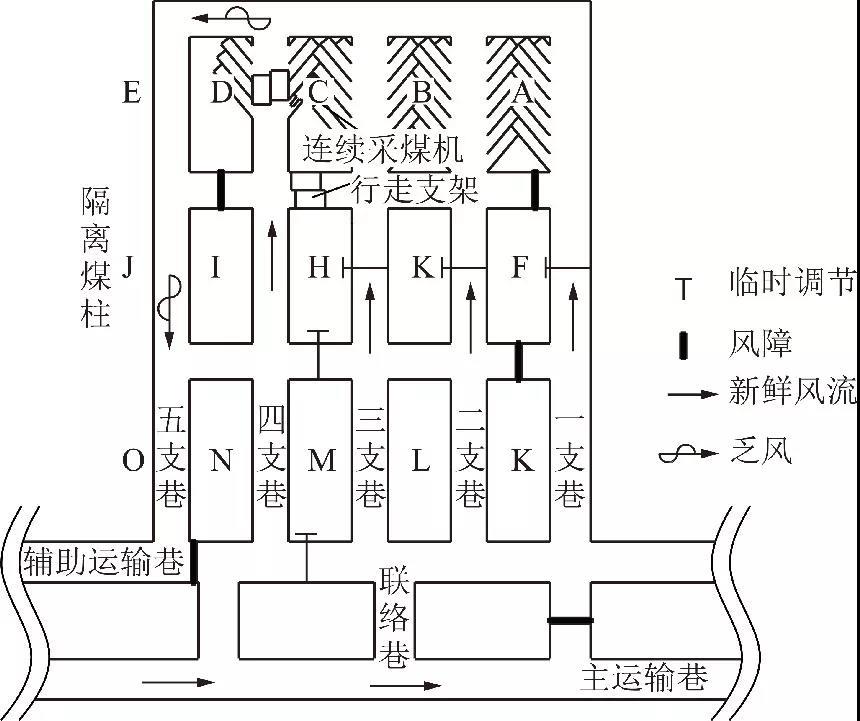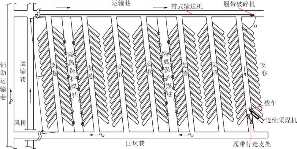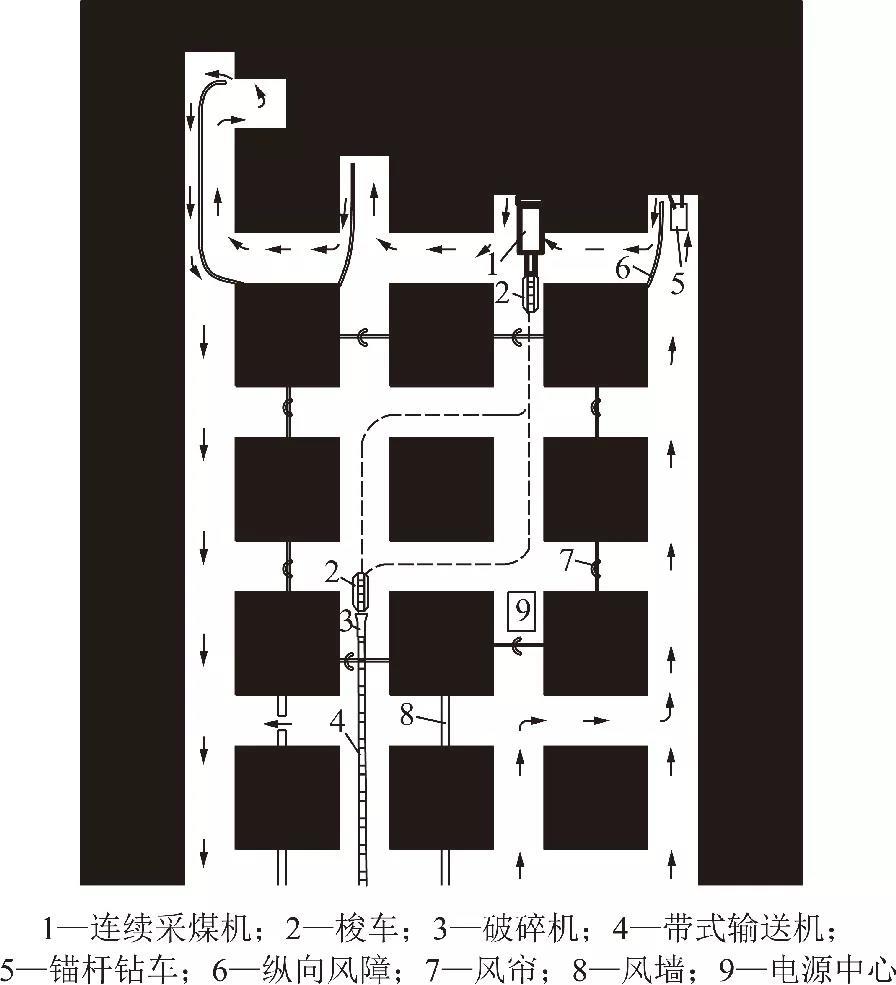 續(xù)采煤機短壁機械化開采技術(shù)(以下簡稱“短壁開采技術(shù)”)是基于現(xiàn)代房柱式采煤法、使用連續(xù)采煤機及其后配套裝備進行煤炭開采的方法,具有采掘合一、機動靈活、投資小、見效快、適應(yīng)范圍廣等特點,因短壁工作面布置較靈活,可實現(xiàn)“即進即退”機械化回采,對斷層、褶曲、陷落柱等構(gòu)造的應(yīng)變能力強,因此,該技術(shù)適用于煤礦井下邊角煤、“三下”壓煤和不規(guī)則塊段開采。