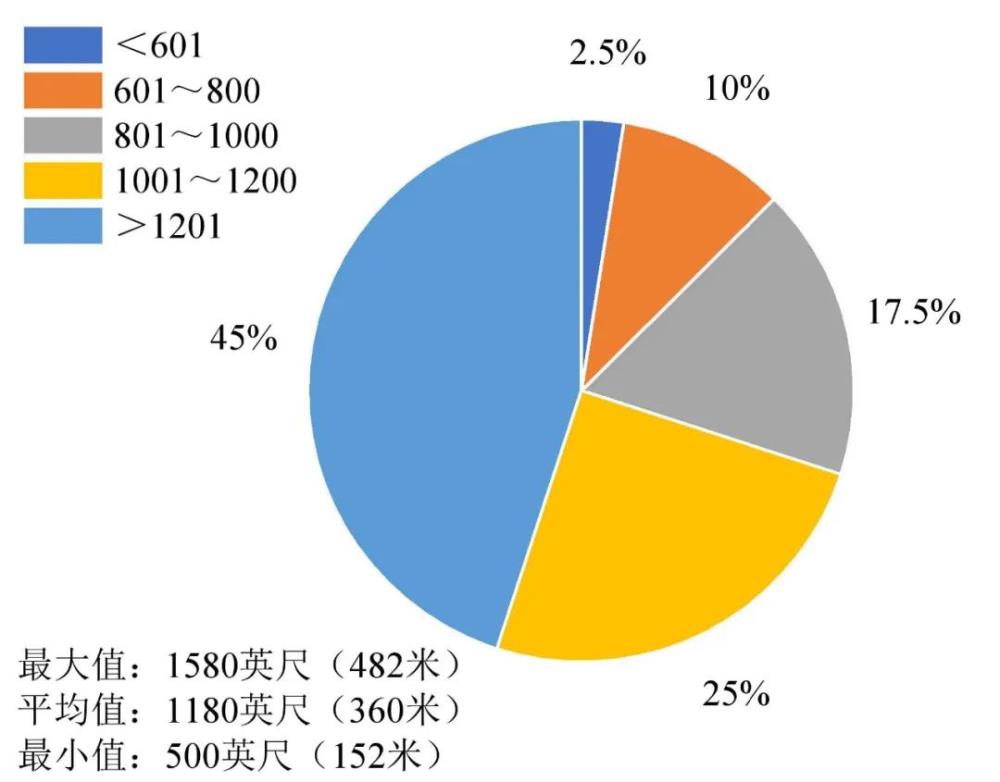 2019年美國(guó)長(zhǎng)壁工作面的長(zhǎng)度分布