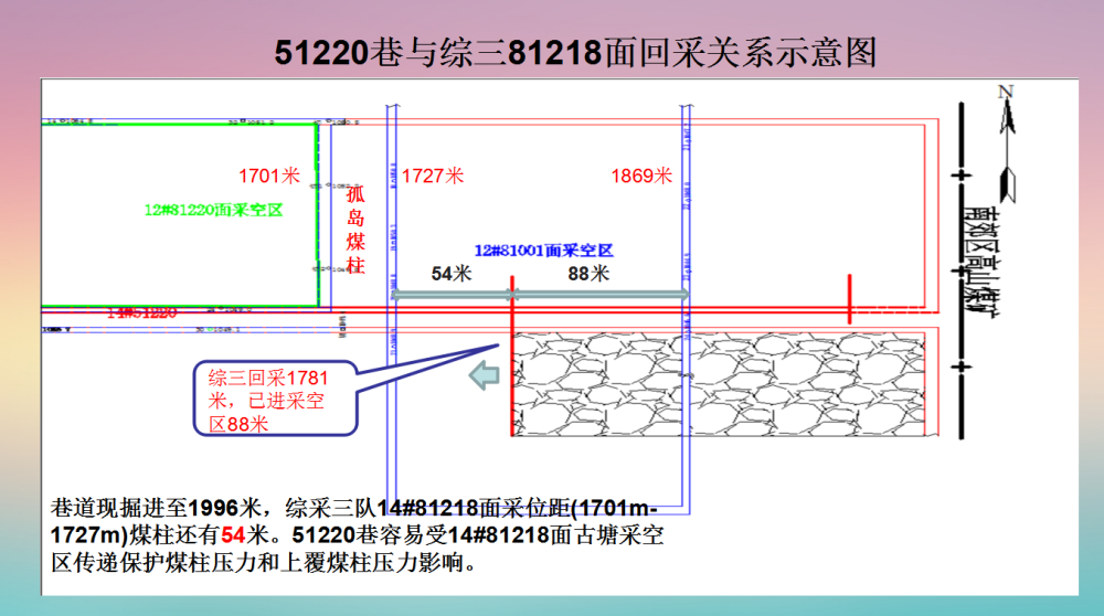 同煤集團(tuán)四臺(tái)礦14#層412盤(pán)區(qū)51220巷掘進(jìn)工作面在掘進(jìn)過(guò)程中需要過(guò)上覆12#層412盤(pán)區(qū)81220采空區(qū)與12#層412盤(pán)區(qū)81001采空區(qū)所留設(shè)的孤島煤柱,在應(yīng)力集中煤柱區(qū)域還要與同層相鄰的14#層412盤(pán)區(qū)81218工作面進(jìn)行采掘交鋒,受動(dòng)壓開(kāi)采影響,特對(duì)51220巷煤柱下支護(hù)工藝進(jìn)行完善,提出一種受動(dòng)壓開(kāi)采過(guò)上覆采空區(qū)孤島煤柱掘進(jìn)施工方法。