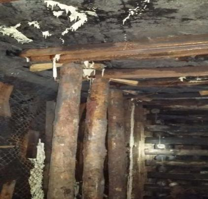 (3)、在1701m-1727m區(qū)段,增加堆柱支護(hù),有條件的支護(hù)在木垛中間,沒(méi)條件的支護(hù)在木垛旁邊。