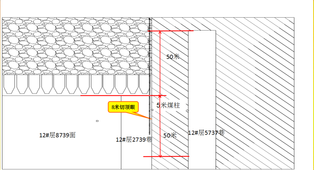 4.2與相鄰?fù)瑢?/span>12#層8739面采掘交鋒期間處理方案