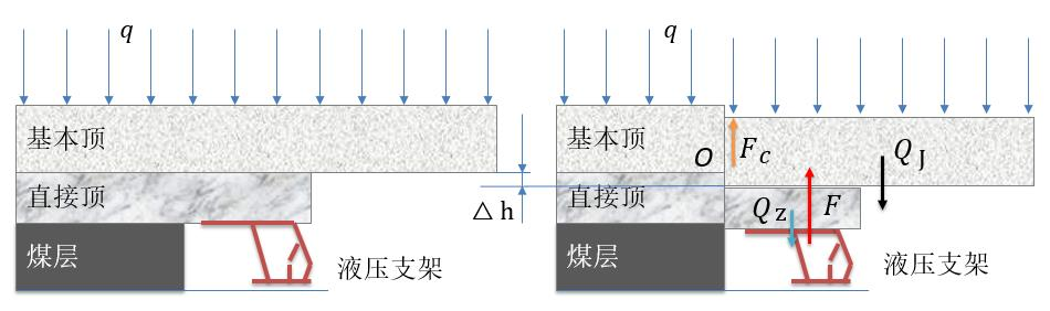 圖3 基本頂超前破斷支架與圍巖結(jié)構(gòu)簡(jiǎn)化模型