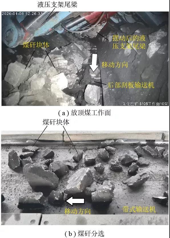 綜采工作面和放頂煤工作面的區(qū)別主要在于放煤。煤炭開采過程中主要涉及到兩類煤矸識(shí)別問題,一是綜采工作面采煤機(jī)割煤過程中的煤巖界面識(shí)別,二是綜放工作面放煤過程中的煤矸識(shí)別。前者已經(jīng)在智能綜采工作面初步實(shí)現(xiàn),而后者要對(duì)后部刮板運(yùn)輸機(jī)上快速運(yùn)動(dòng)的、呈堆積狀態(tài)的煤矸進(jìn)行識(shí)別,目前仍然存在許多技術(shù)難題。目前,放頂煤工作面仍普遍采用人工放煤方式,放煤工人從液壓支架間隙觀察后部刮板運(yùn)輸機(jī)上煤流,觀察矸石是否被放出或者放出的量,進(jìn)而決定是否停止放煤。這種方法勞動(dòng)強(qiáng)度大、生產(chǎn)效率低,且容易出現(xiàn)由于工人主觀原因發(fā)生誤操作的情況。