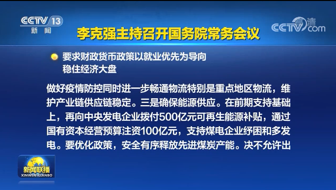 會(huì)議指出,受新一輪疫情、國(guó)際局勢(shì)變化的超預(yù)期影響,4月份經(jīng)濟(jì)新的下行壓力進(jìn)一步加大。要貫徹黨中央、國(guó)務(wù)院部署,堅(jiān)定信心,正視困難和挑戰(zhàn),著力穩(wěn)住經(jīng)濟(jì)大盤,為統(tǒng)籌做好各項(xiàng)工作提供基礎(chǔ),以實(shí)際行動(dòng)迎接黨的二十大勝利召開。一是財(cái)政、貨幣政策要以就業(yè)優(yōu)先為導(dǎo)向,退減稅、緩繳社保費(fèi)、降低融資成本等措施,都著力指向穩(wěn)市場(chǎng)主體穩(wěn)崗位穩(wěn)就業(yè),以保基本民生、穩(wěn)增長(zhǎng)、促消費(fèi)。要進(jìn)一步研究運(yùn)用多種政策工具,調(diào)動(dòng)地方積極性并壓實(shí)責(zé)任,切實(shí)穩(wěn)崗位穩(wěn)就業(yè)。二是確保物價(jià)穩(wěn)定。我國(guó)基本民生需求品供應(yīng)是充裕的,但不可掉以輕心。要抓實(shí)糧食生產(chǎn),確保糧食產(chǎn)量和供應(yīng)穩(wěn)定,夯實(shí)穩(wěn)物價(jià)基礎(chǔ)。在做好疫情防控同時(shí)進(jìn)一步暢通物流特別是重點(diǎn)地區(qū)物流,維護(hù)產(chǎn)業(yè)鏈供應(yīng)鏈穩(wěn)定。三是確保能源正常供應(yīng)。在前期向中央發(fā)電企業(yè)撥付可再生能源補(bǔ)貼500億元、通過(guò)國(guó)有資本經(jīng)營(yíng)預(yù)算注資200億元基礎(chǔ)上,再撥付500億元補(bǔ)貼資金、注資100億元,支持煤電企業(yè)紓困和多發(fā)電。要優(yōu)化政策、強(qiáng)化協(xié)調(diào),安全有序釋放先進(jìn)煤炭產(chǎn)能。決不允許出現(xiàn)拉閘限電。四是對(duì)當(dāng)前有困難的企業(yè)和職工,給予住房公積金政策支持。今年底前企業(yè)申請(qǐng)即可緩繳,職工正常提取公積金和申請(qǐng)公積金貸款不受影響,預(yù)計(jì)減緩企業(yè)負(fù)擔(dān)900多億元。職工未正常償還公積金貸款,不作逾期處理。各地可合理提高公積金租房提取額度。五是抓緊研究養(yǎng)老保險(xiǎn)費(fèi)緩繳政策擴(kuò)圍、延長(zhǎng)實(shí)施期限的措施,指導(dǎo)地方對(duì)中小微企業(yè)、個(gè)體工商戶水電氣等費(fèi)用予以補(bǔ)貼。
