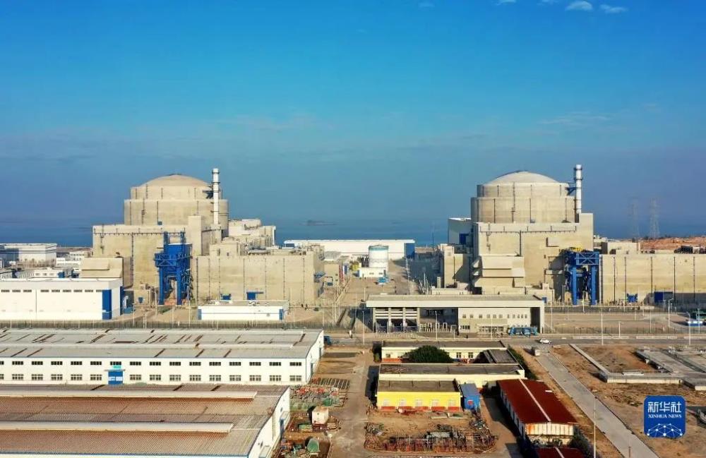 我國(guó)自主三代核電、"國(guó)家名片"華龍一號(hào)示范工程:福清核電5號(hào)機(jī)組(左)和6號(hào)機(jī)組(2021年12月29日攝,無(wú)人機(jī)照片)。新華社發(fā)