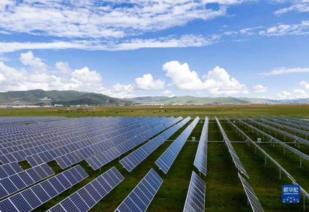 這是位于四川省阿壩州紅原縣邛溪鎮(zhèn)麻薩村的花海光伏電站(2021年8月14日攝,無(wú)人機(jī)照片)。新華社記者 江宏景 攝