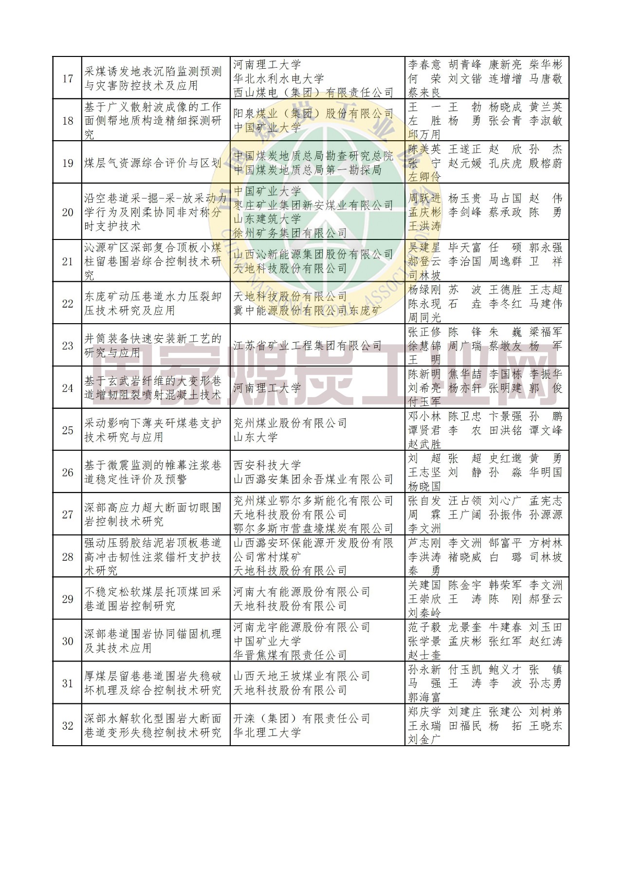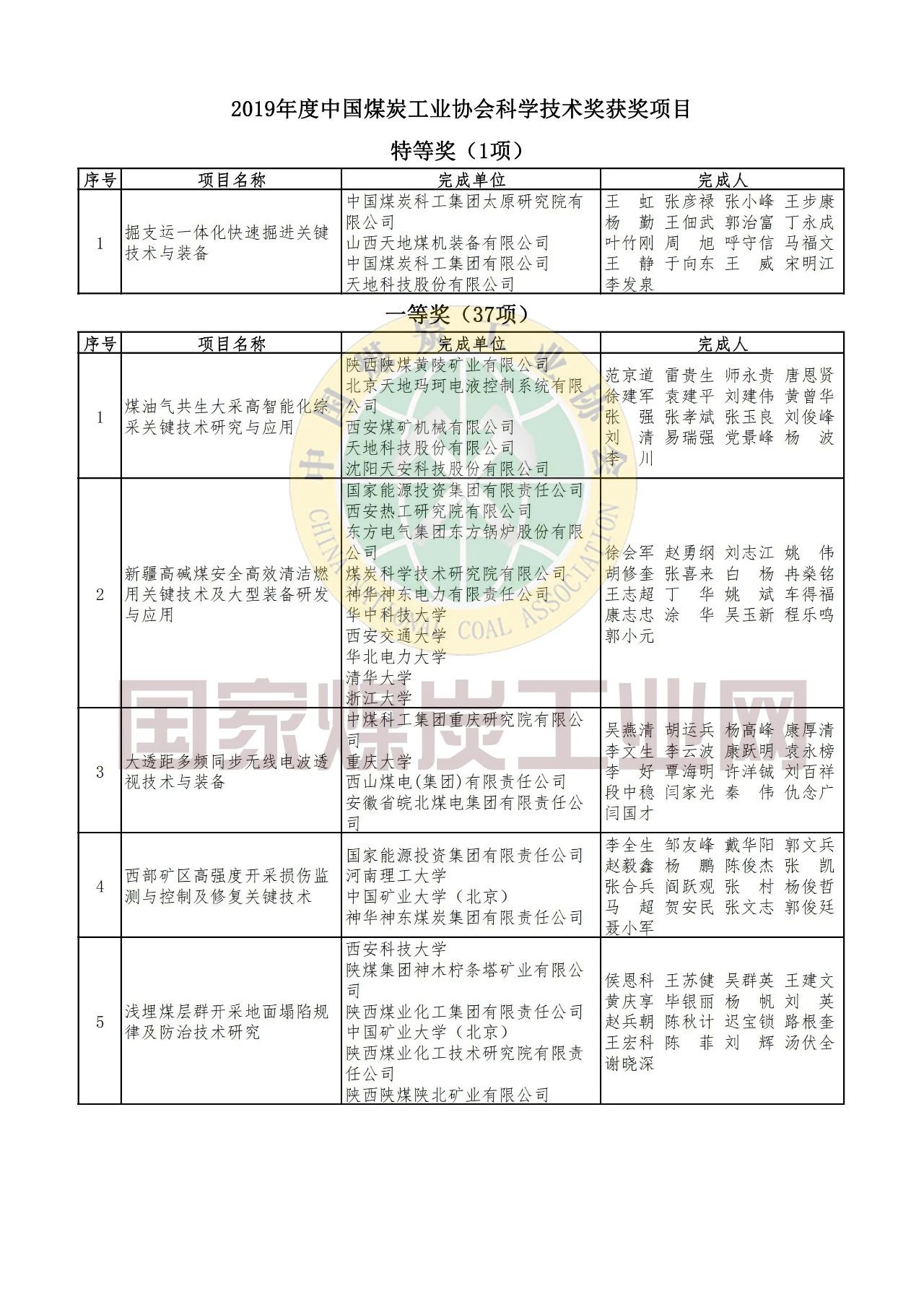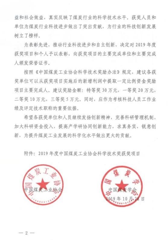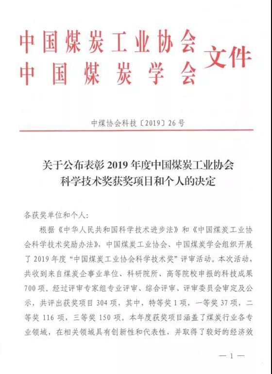 關(guān)于公布表彰2019年度中國煤炭工業(yè)協(xié)會科學(xué)技術(shù)獎獲獎項(xiàng)目和個人的決定