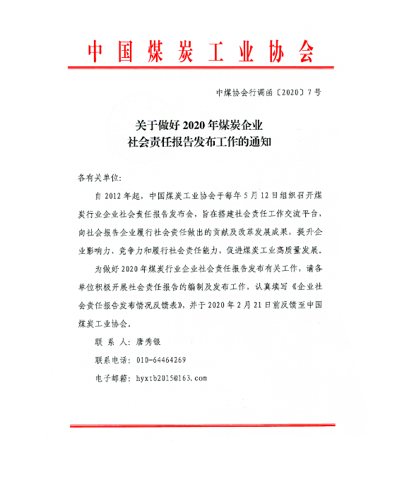 關(guān)于做好2020年煤炭企業(yè)社會責(zé)任報告發(fā)布工作的通知