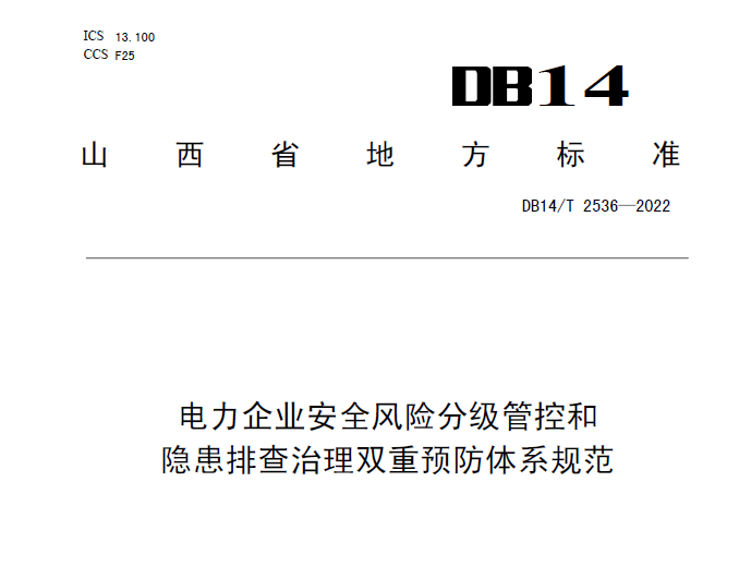 2022年,研究院起草編寫的山西省地方標準《電力企業(yè)安全風(fēng)險分級管控和隱患排查治理雙重預(yù)防體系規(guī)范》正式發(fā)布實施,該標準是全國首個面向電力行業(yè)所有企業(yè)的通用性雙重預(yù)防體系建設(shè)、運行省級地方標準。將風(fēng)險管控和隱患排查工作一體化,并與電力企業(yè)原有安全管理方法有機融合,構(gòu)建了明確的風(fēng)險分級管控責(zé)任體系。