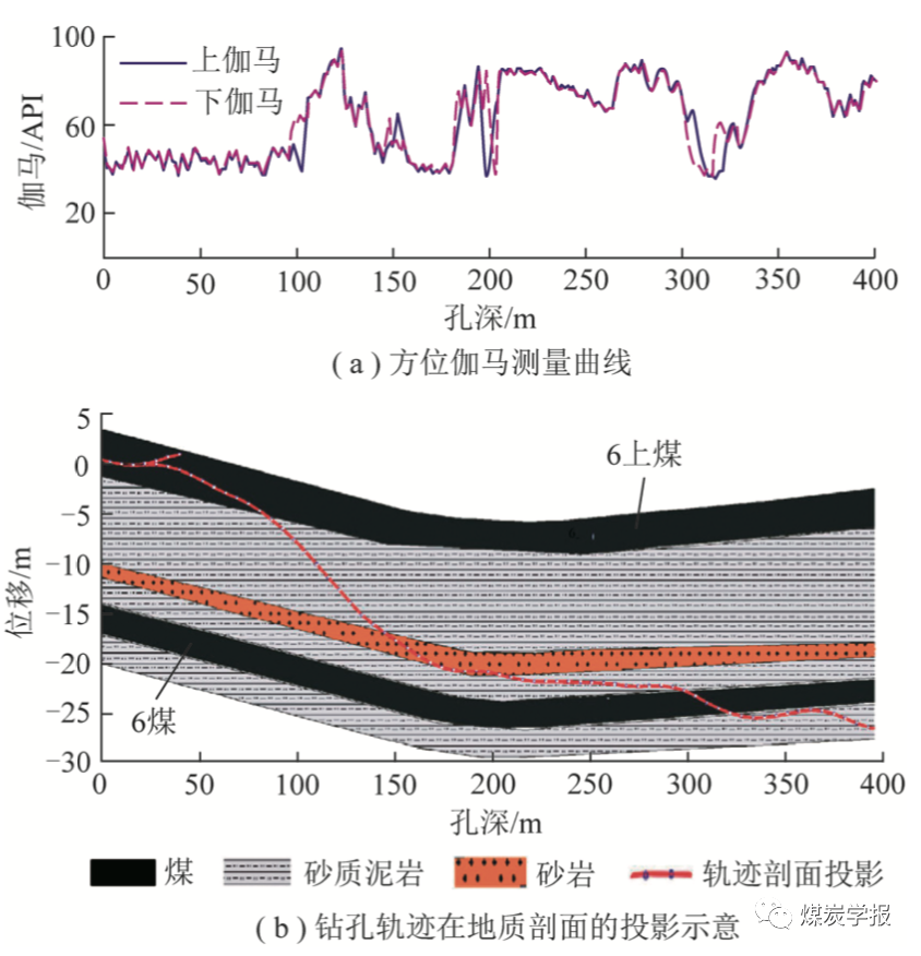 圖 1 黃玉川煤礦井下隨鉆方位伽馬測井試驗成果
