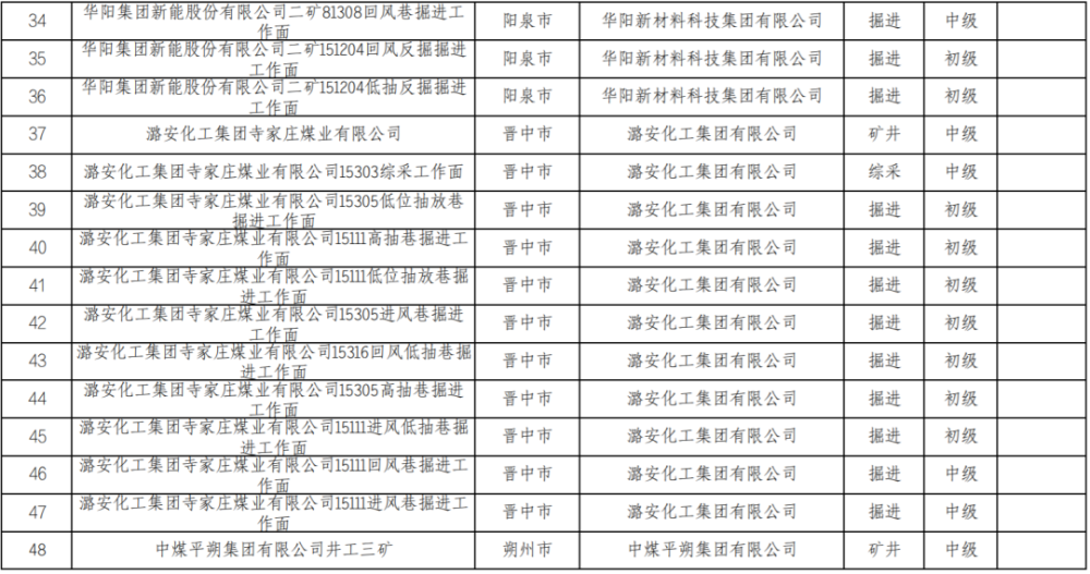 經(jīng)大同市、呂梁市等能源局申請(qǐng),省能源局按照規(guī)定組織專家對(duì)山西帽帽山煤業(yè)有限公司智能化礦井等48個(gè)智能化建設(shè)項(xiàng)目進(jìn)行了現(xiàn)場(chǎng)評(píng)定,現(xiàn)將符合《全省煤礦智能化建設(shè)基本要求及評(píng)分方法(試行)》的智能化項(xiàng)目予以公告。
