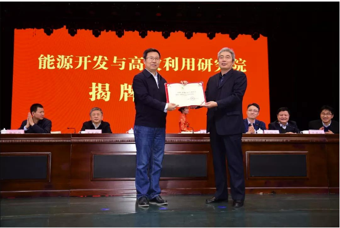 游浩為金智新頒發(fā)了研究院首席科學家聘書,并與太原理工大學黨委書記吳玉程共同為能源開發(fā)與高效利用研究院揭牌。