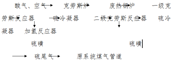 特點(diǎn):①引入酸尾氣加氫處理新技術(shù);②采用廢熱鍋爐回收廢熱,產(chǎn)生低壓蒸氣外送管網(wǎng);③綜合治理原有環(huán)保問題,酸尾氣不外排,做到節(jié)能減排;④煤氣、空氣供應(yīng)、硫產(chǎn)品貯存包裝等利用原有設(shè)備、公用設(shè)施及資源,減少了投資;⑤硫磺回收率高,可達(dá)95%以上。