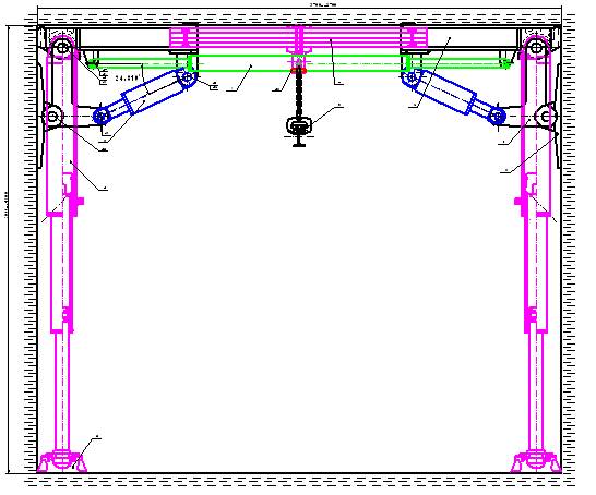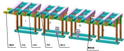 研制了大變形回風(fēng)巷超前支護(hù)系統(tǒng),支移機(jī)構(gòu)由吊掛機(jī)構(gòu)、自懸式軌道、行走機(jī)構(gòu)和平衡機(jī)構(gòu)組成;其特點(diǎn)為:?jiǎn)慰蚣芙Y(jié)構(gòu)型式;能適應(yīng)動(dòng)壓巷道變形量要求;避免了對(duì)頂板的反復(fù)支撐;可根據(jù)巷道斷層尺寸進(jìn)行頂梁調(diào)節(jié);有護(hù)幫機(jī)構(gòu);通過吊掛環(huán)形工字鋼梁實(shí)現(xiàn)支架的支、回、運(yùn)等動(dòng)作。