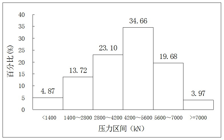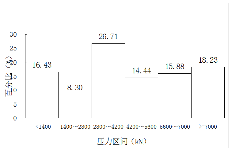 (6)提高了支架的初撐力。支架初撐力達(dá)到支架工作阻力的81%以上;同時(shí)加大前梁千斤頂缸徑,其缸徑為φ200,增加了前梁對(duì)頂煤的支撐力,提高了支架對(duì)新暴露頂板的控制能力。
