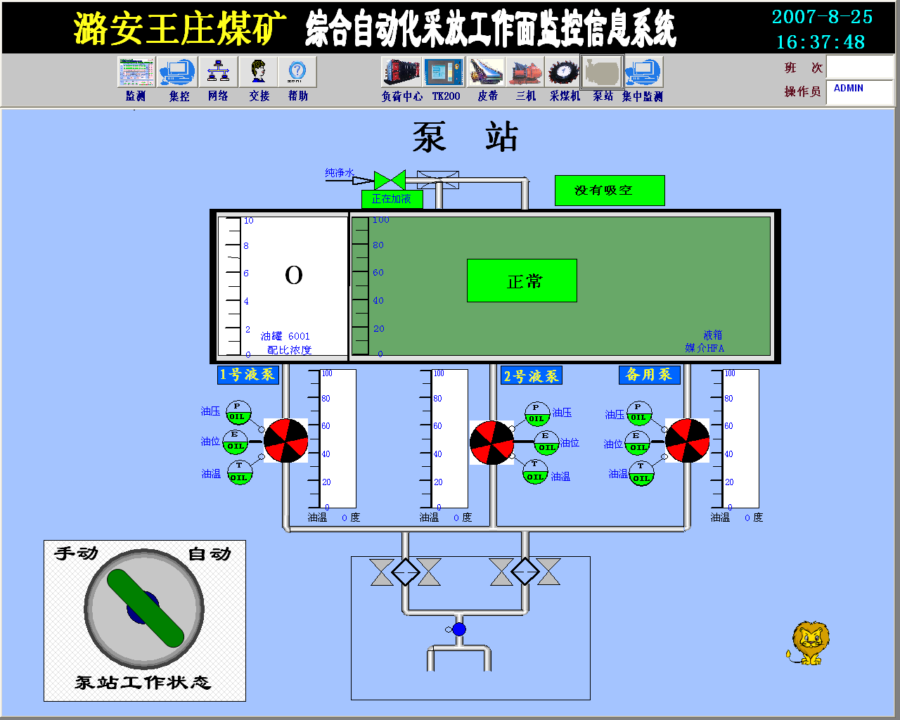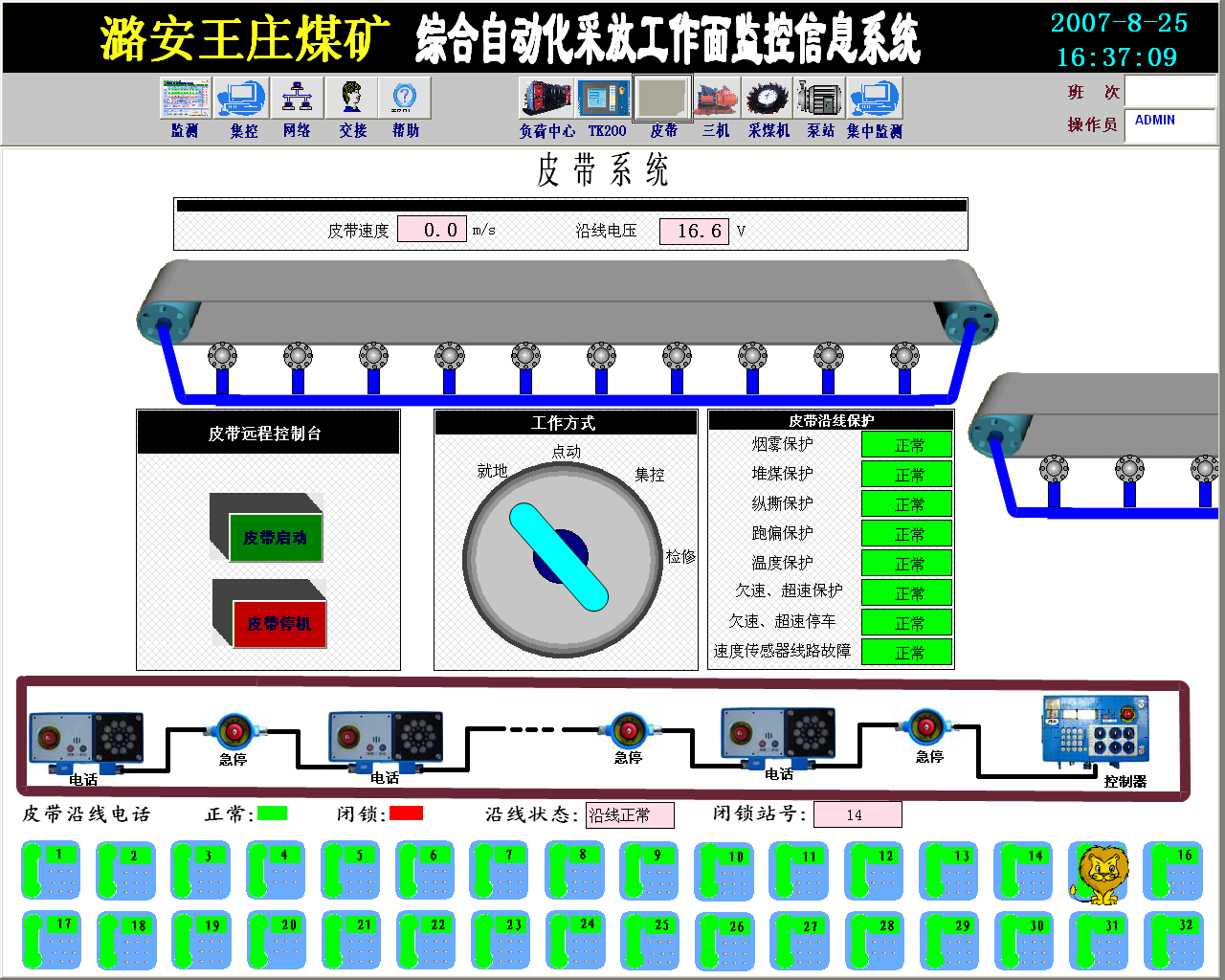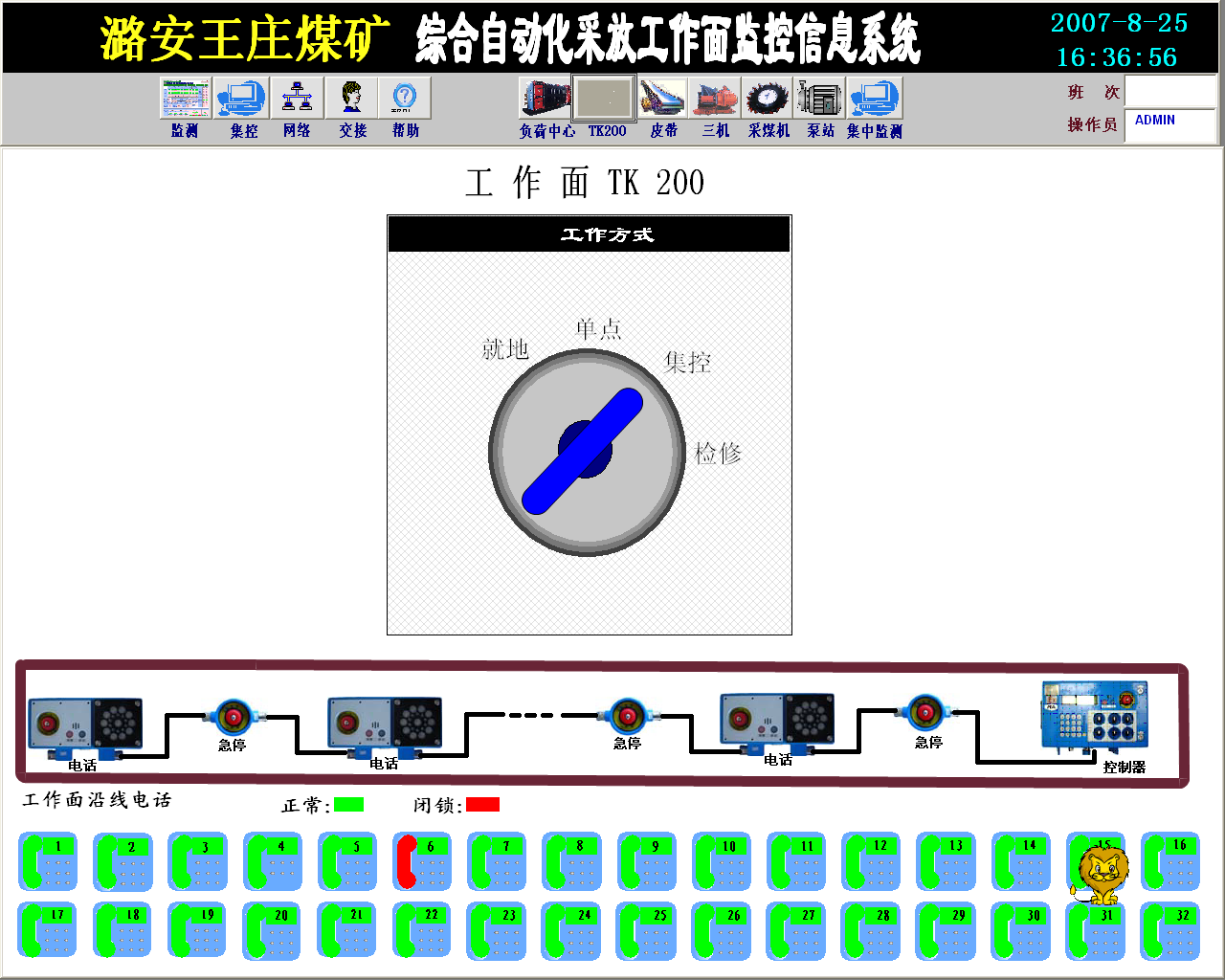 將電液控制技術(shù)應(yīng)用于大采高四柱支撐掩護(hù)式綜放設(shè)備,采用漢字顯示,開發(fā)適合于采放工藝要求的自動(dòng)跟機(jī)控制程序,達(dá)到采放平衡。采用本安型工業(yè)以太網(wǎng)技術(shù),通過Modbus/TCP總線、標(biāo)準(zhǔn)的OPC接口,實(shí)現(xiàn)系統(tǒng)控制臺(tái)對(duì)工作面設(shè)備的集中控制,實(shí)現(xiàn)了綜放工藝自動(dòng)化。實(shí)現(xiàn)主運(yùn)輸、供電設(shè)備的地面集中控制,無人值守。大幅度提高綜放工作面及環(huán)節(jié)系統(tǒng)自動(dòng)化水平、安全可靠性,達(dá)到減人提效的目的。