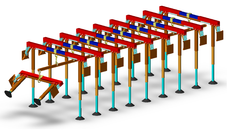 圖28 支架總裝圖 圖29 回風(fēng)巷循環(huán)支移支架移架立體圖
