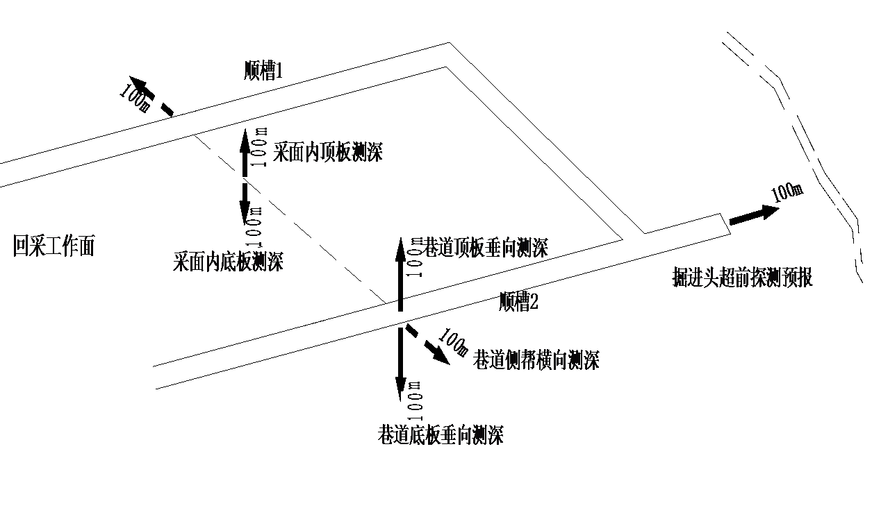 巷道掘進(jìn)頭和側(cè)幫前方導(dǎo)水構(gòu)造的探測;巷道頂、底板富水區(qū)域探測;回采工作面內(nèi)含水地質(zhì)異常體的探測