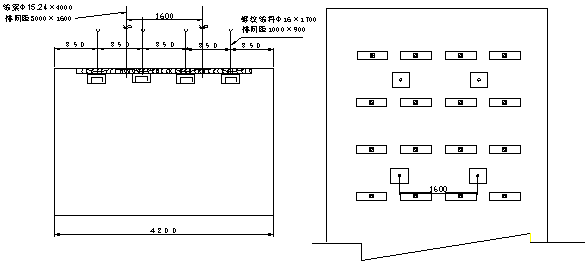 圖2 層間距3.0~4.0m以上正常支護(hù)斷面、平面示意圖