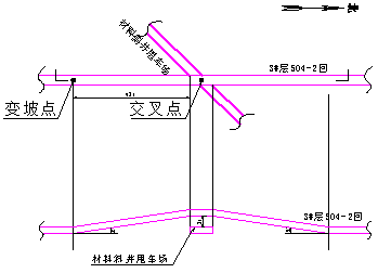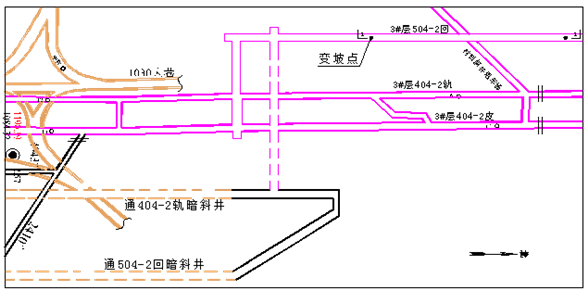 2、2#層、3#層大巷保護煤柱為云崗礦第二個回收煤柱工作面。該煤柱回收過程中采用原有巷道進行修復,并掘進一條回風巷,再圈定工作面對2#、3#煤柱進行回收。由于初期3#層大部分巷道處于密閉狀態(tài),通風、運料系統(tǒng)單一,經多方位論證決定504-2回風巷穿過材料斜井甩車場時,需要從巷道上方穿過,保證通風和運料正常運行。