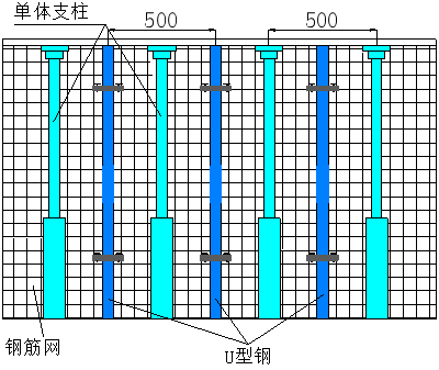 待工作面推過(guò)后,及時(shí)在機(jī)尾支架后方進(jìn)行擋桿支護(hù),按照“一梁三柱”方式打設(shè)單體支柱,支架后0-50m范圍內(nèi),單體排距500mm;支架后50-200m范圍內(nèi),單體排距為1000mm,在靠近采空區(qū)側(cè)每?jī)杉軉误w棚子之間布置U型鋼可縮支架并鋪設(shè)鋼筋網(wǎng),單體及U型鋼可縮支架必須加設(shè)柱靴增加摩擦力,防止支柱及U型鋼可縮支架滑動(dòng)。鋼筋網(wǎng)采用?6.5mm的鋼筋網(wǎng),尺寸為1500mm×1100mm,與頂板鋼筋網(wǎng)捆扎在一起,鋼筋網(wǎng)之間重疊不小于65mm,并用鐵絲捆扎。為防止漏風(fēng)現(xiàn)象發(fā)生,采取在鋼筋網(wǎng)與采空區(qū)之間鋪設(shè)雙抗布,高度取3.4m,上下各超出30cm,超出部分分別固定到頂?shù)装?,并進(jìn)行有效封閉。雙抗布搭縫處寬度30cm,固定后亦進(jìn)行封閉處理。