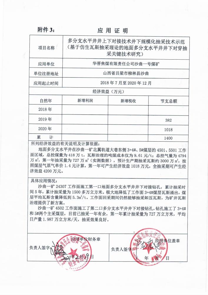 2020年度山西省煤炭學(xué)會(huì)科學(xué)技術(shù)獎(jiǎng)申請(qǐng)書