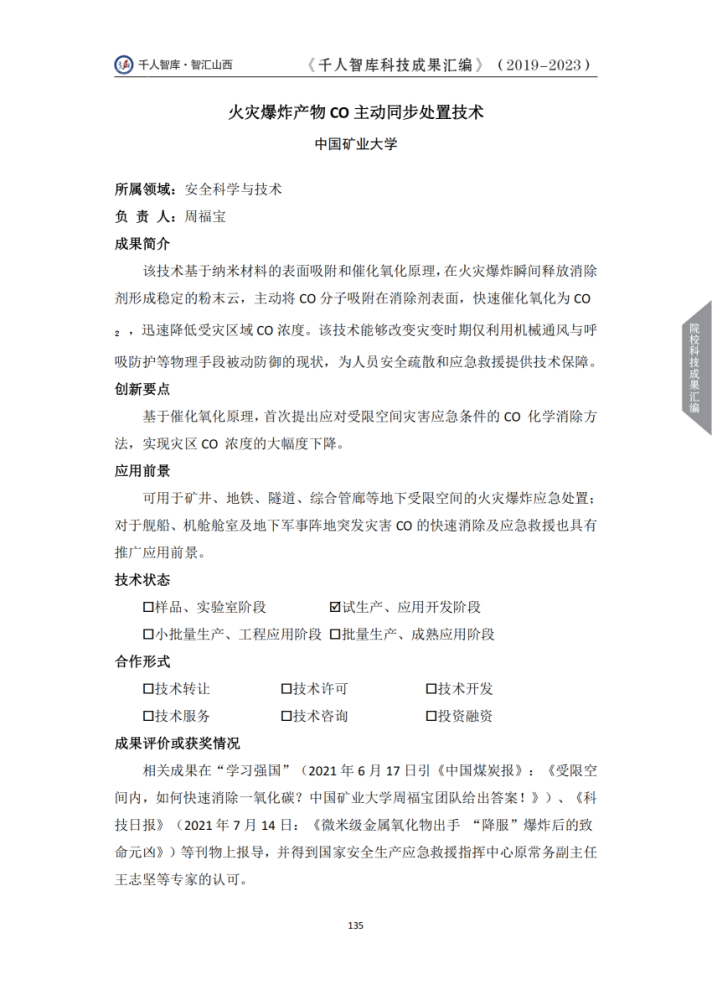 火災(zāi)爆炸產(chǎn)物 CO 主動(dòng)同步處置技術(shù)