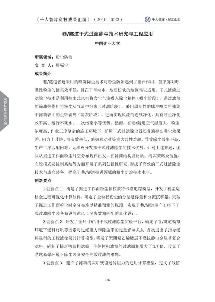 巷/隧道干式過濾除塵技術(shù)研究與工程應(yīng)用