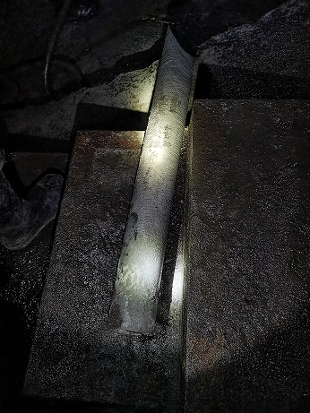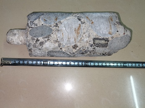 圖1 地應(yīng)力測(cè)孔布置示意圖 2、測(cè)試步驟根據(jù)空芯包體應(yīng)變計(jì)解除的原理,地應(yīng)力現(xiàn)場(chǎng)具體測(cè)量步驟、所需儀器及注意事項(xiàng)如下: (1)地質(zhì)鉆打孔 地點(diǎn)選取。選取整體巖性較好區(qū)域的巷道,安設(shè)測(cè)點(diǎn)。測(cè)點(diǎn)巷道內(nèi)應(yīng)水電方便,地質(zhì)鉆工作時(shí)應(yīng)不影響巷道運(yùn)輸。 打孔取芯。使用地質(zhì)鉆機(jī),如圖2所示,配直徑為42mm的接長鉆桿,并運(yùn)用特制的取芯套筒(長度為1m,直徑為127mm)及平鉆頭(直徑為127mm),如圖2所示。在所測(cè)巷道巖壁上打直徑為127mm的鉆孔,至巷道跨度的2~3倍深處,以保證應(yīng)變計(jì)安裝位置位于原巖應(yīng)力區(qū)。當(dāng)鉆孔至預(yù)定長度時(shí),取出巖芯,并編號(hào)套袋保護(hù)巖芯,最終成孔如圖3所示,取得的巖芯如圖5所示。